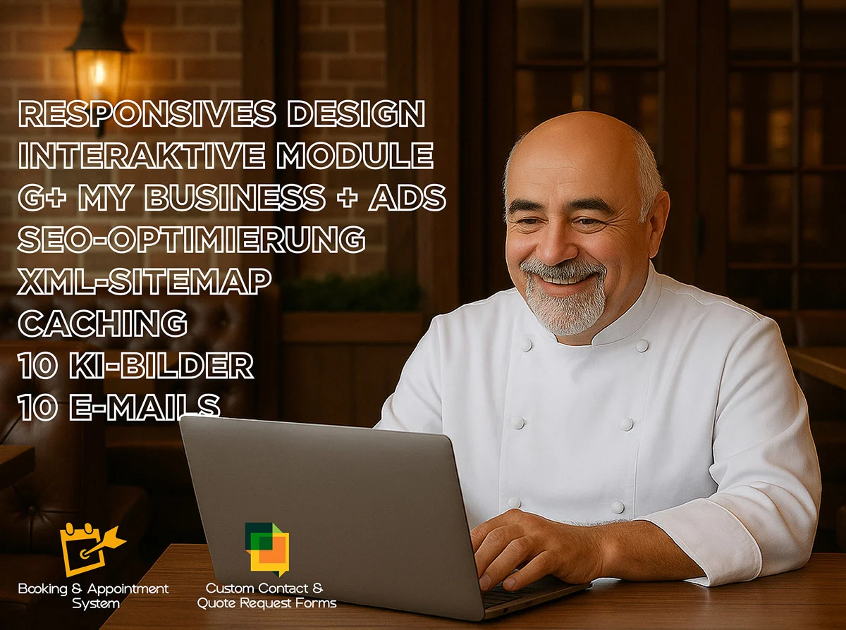 Integrierte Kontakt-, Termin- und Anfrageformulare erleichtern die Kommunikation mit neuen Kunden. Zusätzlich ist eine Google My Business Integration enthalten – wir richten Ihr Unternehmensprofil optimal ein und verknüpfen es direkt mit Ihrer Website, um Ihre lokale Sichtbarkeit zu maximieren.